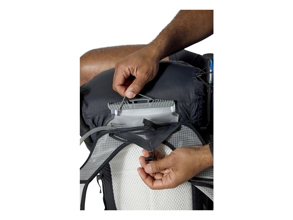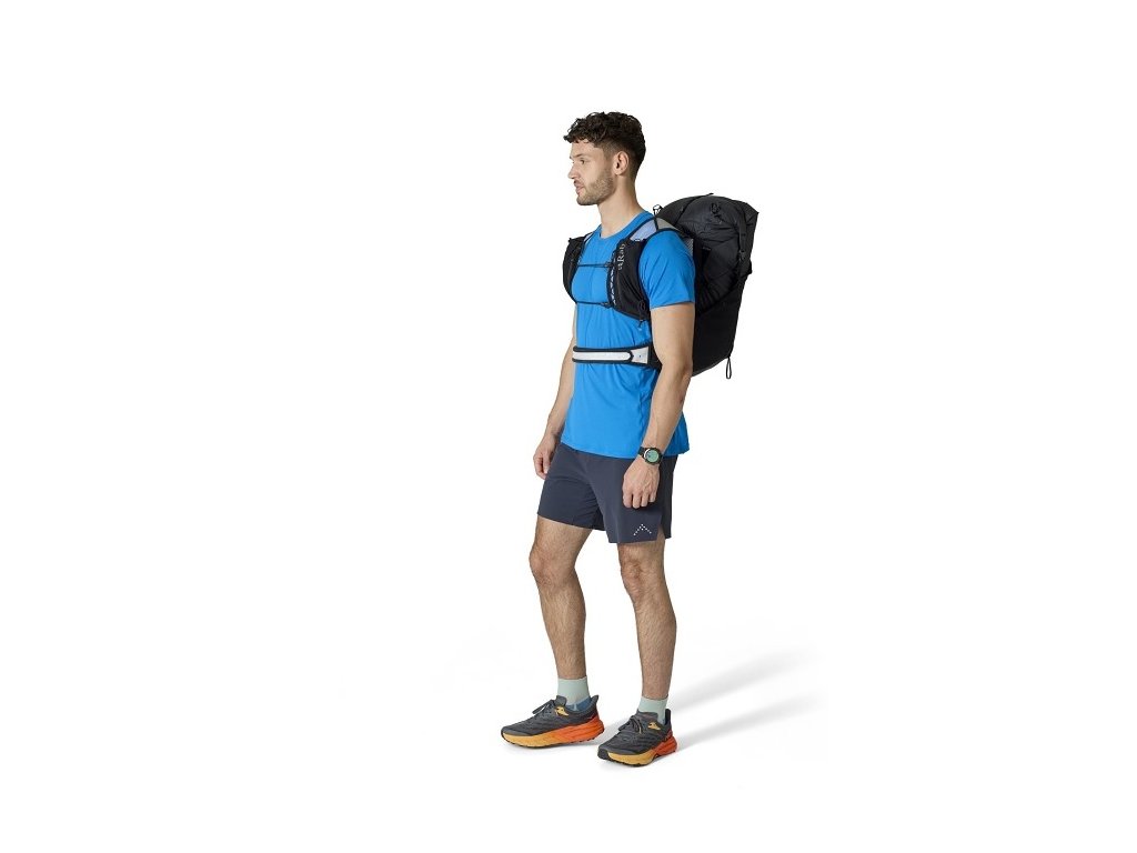 Ultralehký voděodolný batoh pro svižný pohyb v nepředvídatelných podmínkách. Nosný systém z prodyšné 3D síťoviny, vhodný pro vícedenní horské běhy. Objem 30 l.