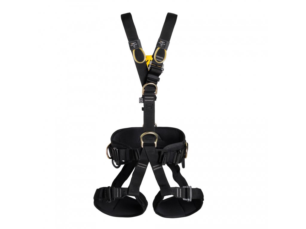 Plně nastavitelný celotělový úvazek pro lanový přístup, polohování pracovníka a zachycení pádu s Easy-lock sponami, ocelovými komponenty, indikátorem pádu a odkládacími oky na háky.